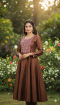 Chocolate Brown Vichithra Silk Anarkali Umbrella Kurthi